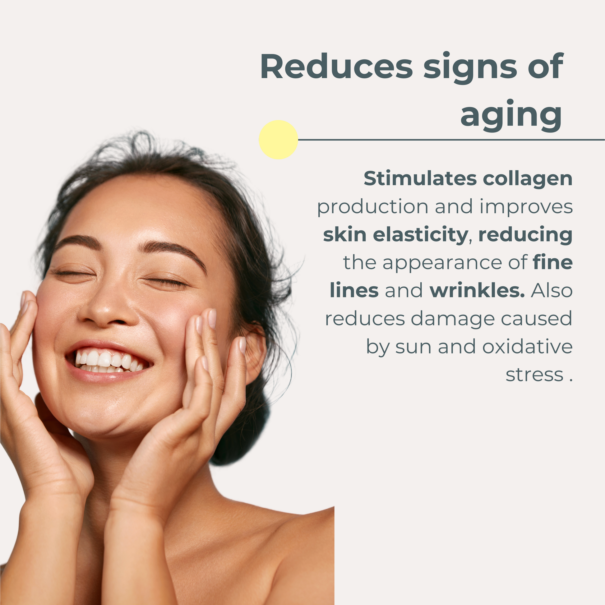 Root Extract helps calm inflammation and further brightens the skin, while Ashwagandha,